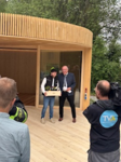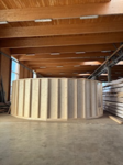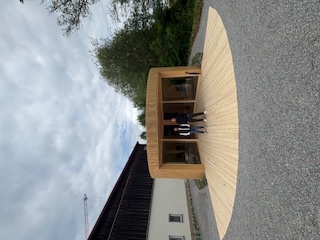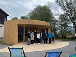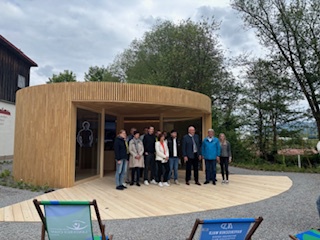 Fassade: Zementfaserplatte in den Farben blau und gelb